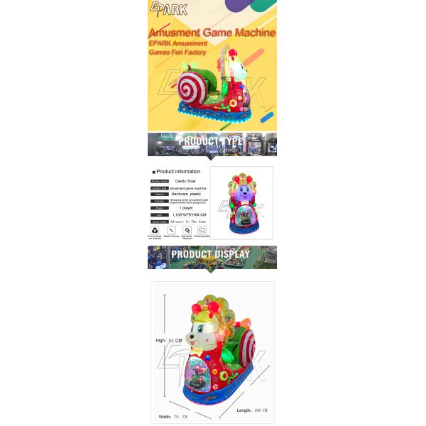 Name : Cute snail coin operated mini electronic amusement kiddie rides EPARK plastic kids swing electric ride on game machine
